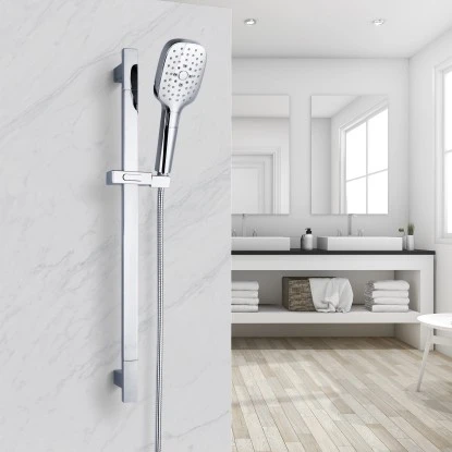 Das Aurlane Handbrause-Set Silver Dream in Chrom ist mit einer Duschstange mit stufenlos verstellbarem Stangengleiter ausgestattet. Dieser ermöglicht ein geschmeidiges und geräuschloses Gleiten. Die Handbrause in Chrom ist mit 3 Strahlarten ausgestattet, zwischen denen einfach per easy switch gewechselt werden kann.