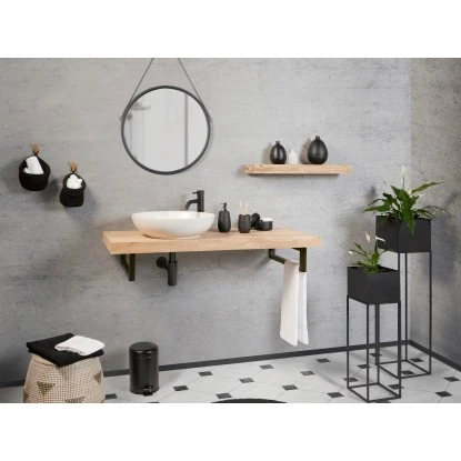 Durch seine Schlichtheit kannst du mit dem Becken viele Einrichtungsideen umsetzen: von rustikal bis exklusiv. Kombiniere es mit hellem oder dunklem Holz, Stein- oder Metallplatten – deiner Fantasie sind hierbei keine Grenzen gesetzt. Egal ob du lieber auf Kontraste oder eine einheitliche Optik setzt, mit diesem Becken kreierst du deinen ganz persönlichen Stil. Besonders gut passt das Design, das an eine traditionelle Waschschüssel erinnert, zum angesagten Landhausstil. Diesen kannst du am besten durch die Kombination mit einer rustikalen Holzplatte und einer messingfarbenen Armatur umsetzen.