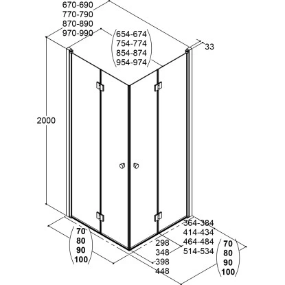 Der Verstellbereich bei einer Nischenlösung mit dem Wandprofil Nr. 8 beträgt 875 mm – 895 mm. Für Duschwannen mit einer Größe von 900 mm.