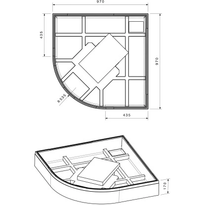 Duschwannenträgerfür Ottofond Kraton Viertelkreis 100 cm x 100 cm Duschwanne