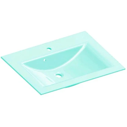 Ein extravagantes, stilvolles und großzügiges Glasbecken, passend zur ebenfalls im OBI Online-Shop erhältlichen Badmöbelserie Viora der Firma Fackelmman. Das Glasbecken ist 80 cm breit und weiß mit einer mintgrünen Farbgebung zu gefallen.