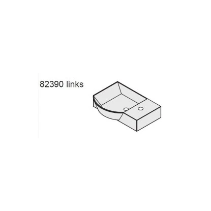 Das vorgefertigte Hahnloch zum Anschließen einer Einlocharmatur (nicht im Lieferumfang enthalten) befindet sich auf der rechten Seite des Handwaschbeckens.