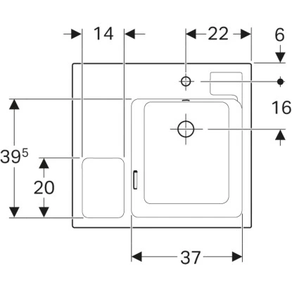 Das Geberit Waschbecken Bambini hat die Maße 60 cm x 55 cm und ein Hahnloch und einen Überlauf. Er hat eine separate Ablagefläche und ein integriertes Abtropffach, für zum Beispiel einen Schwamm oder Lappen. Durch den verarbeiteten Feuerton überzeugt das Waschbecken auch in seiner Qualität und ist robust und kratzfest.