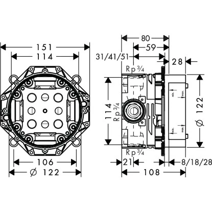 Die Hansgrohe iBox ist der universale Grundkörper für zahlreiche Hansgrohe Unterputz Wannen- und Duschmischer.
