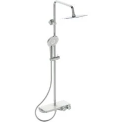 Das Ideal Standard Duschsystem aus der Serie Ceratherm S200 bietet Ihnen ein unübertroffenes Maß an Langlebigkeit, Sicherheit und Leistung, welches sich in einem schlanken und ergonomischen Design mit Ablage präsentiert. Das Design überzeugt mit einem edlen Chrom-Finish und einer glanzvollen Oberflächenoptik. Die verchromte Oberfläche zeichnet sich dabei durch lange Haltbarkeit aus. Sie ist extrem widerstandsfähig und lässt sich zudem einfach reinigen und pflegen. Auch die hochwertigen und robusten Metallgriffe der Armatur sorgen für einen dauerhaften eleganten Look. Diese sind zudem ergonomisch und einfach zu bedienen.