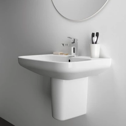 Der Ideal Standard Waschtisch aus der Serie Ideal Standard i.life A präsentiert sich in einer organischen Form, die Raum für Ihr Wohlbefinden schafft und sich jeder Stilrichtung anpassen kann.