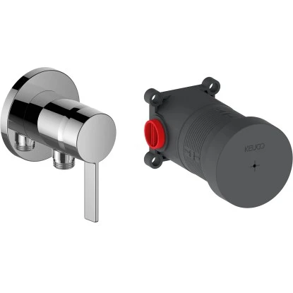 Die Keuco Brausearmatur für die Dusche besteht aus einem Einhebelmischer mit integriertem Schlauchanschluss nach UP DN15. Der Einhebelmischer ist hochglanzverchromt und dadurch besonders robust und wirkt gleichzeitig elegant.