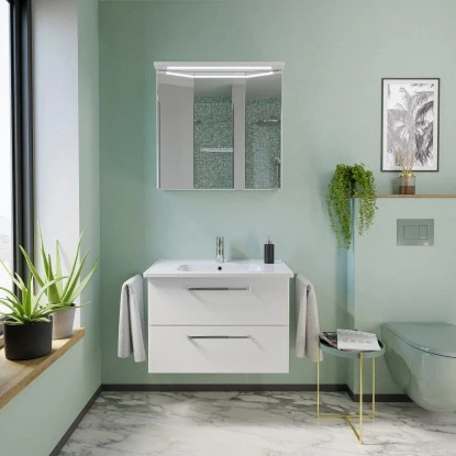 Bitte beachten Sie: Artikel dieser Serie sind nur bestellbar in Kombination aus mindestens Waschbecken, Waschbeckenunterschrank und Spiegelschrank.