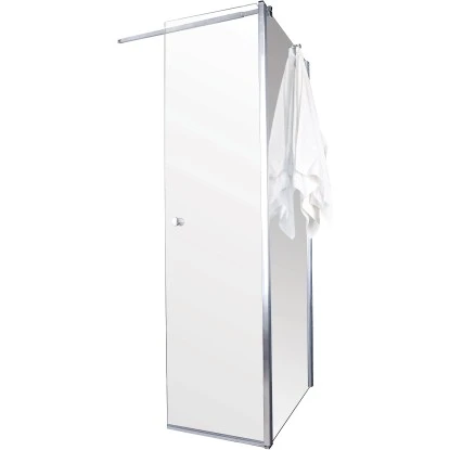 Die Sanotechnik Duschwand Grande ist eine teilgerahmte Trennwand für Eck- oder Nischenduschen und verfügt über eine praktische Drehtür. So wird das Duschen zum komfortablen Erlebnis, ohne dass Wasser sich im ganzen Badezimmer verteilen kann.