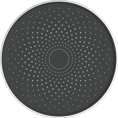 Die elegante Überkopfbrause mit flachem Duschkopf (Ø ca. 26 cm) und floral anmutender Anordnung der Düsen ist ein absolutes Highlight für jede Dusche