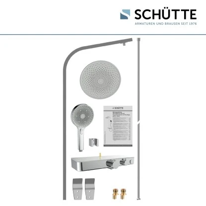 Schütte Duschset Samoa Rain mit Thermostatarmatur Glasablage Chrom Hellgrau. Exklusives Edelstahl-Duschpaneel mit großer Regendusche und Handbrause-Blickfang für die Dusche