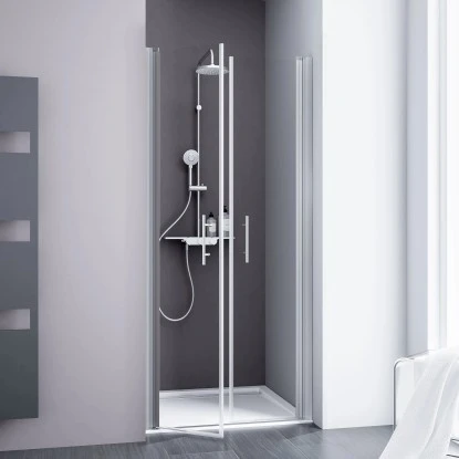 Die Pendeltür in Nische der Serie Alexa Style 2.0 überzeugt auf den ersten Blick mit einer Teilrahmung aus Aluminiumprofilen in der Farbe Alu-Natur. Das 5 mm starke Sicherheitsglas (ESG) zeichnet sich darüber hinaus langfristig durch seine hohe Widerstandskraft aus: Belastungen durch Schläge, Stöße, Biegungen oder Temperaturschwankungen stellen keine Herausforderung für das Glas dar.