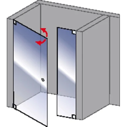 Die Drehtür mit Nebenteil in Nische besteht aus 8 mm Einscheiben-Sicherheitsglas. Die innen bündigen eckigen Scharniere sind bereits vormontiert und schließen innen bündig mit der Glasfläche ab. Die Reinigung Ihrer Duschkabine wird damit zum Kinderspiel. Durch den verdeckten Heb-Senk-Mechanismus der Scharniere hebt die Tür beim Öffnen leicht an und senkt sich beim Schließen wieder ab. Erhöhte Dichtigkeit und zuverlässiges Schließverhalten sind dadurch garantiert. Der verdeckte Heb-Senk-Mechanismus wird erst beim Bewegen der Tür bemerkbar. Der große Stabgriff verleiht dieser Dusche einen eleganten Look.<