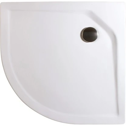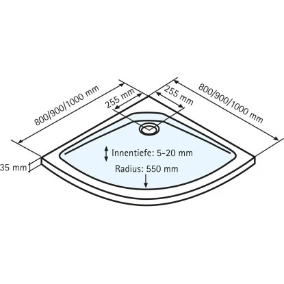 Die extraflache runde Duschwanne hat die Maße 100 cm x 100 cm und ist Alpinweiß. Der Radius beträgt 55 cm.
