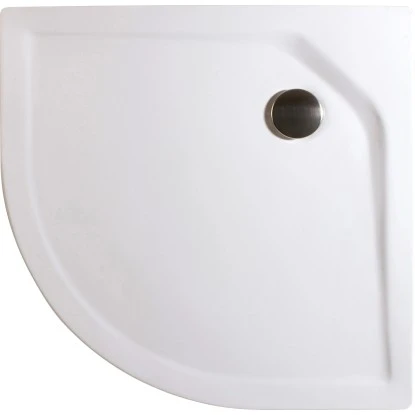 Die extraflache runde Duschwanne hat die Maße 80 cm x 80 cm und ist Alpinweiß. Der Radius beträgt 55 cm.