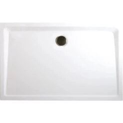 Die extraflache rechteckige Duschwanne hat die Maße 75 cm x 90 cm und ist Alpinweiß.