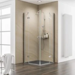 Der Eckeinstieg besteht aus 6 mm Echtglas. Durch die werkseitig aufgetragene fixil-Beschichtung wird die Reinigung der Dusche vereinfacht: Das Wasser zieht sich in dicken Tropfen zusammen und fließt mit Kalk- und Schmutzrückständen einfach ab. fixil-Glassiegel wird in einem aufwendigen Verfahren werkseitig auf der dem Wasser ausgesetzten Seite Ihrer Dusche aufgetragen.