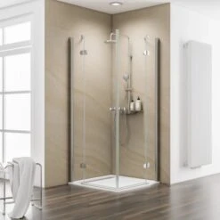 Der MasterClass Eckeinstieg besitzt zwei nach außen öffnende Drehtüren mit einem großzügigen Einstieg. Der verdeckte Heb-Senk-Mechanismus der Türen sorgt für eine erhöhte Dichtigkeit sowie ein zuverlässiges Schließverhalten. Durch die vormontierten innen bündigen Halbkreis-Scharniere ist eine einfache Pflege und eine einfache Montage der Dusche gegeben. Diese liegen mit der Glasfläche bündig auf. Dadurch können Wassertropfen einfach entfernt werden. Die im Lieferumfang enthaltenen Stabilisationsbügel garantieren einen sicheren Stand der Dusche.