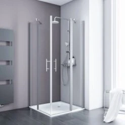 Die Schulte Duschkabine mit Eckeinstieg Alexa Style 2.0 verleiht jedem Raum eine besondere Atmosphäre. Insgesamt vier klare Echtglaselemente (ESG), von denen zwei feststehend sind, lassen jeden Raum geräumiger wirken.