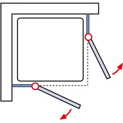 Die zwei nach außen öffnenden Drehtüren sind mit eleganten Aluminiumprofilen an den feststehenden Seitenteilen befestigt, sodass ein komfortabler Einstieg in den Duschbereich ermöglicht wird. Auch die formschönen Stabilisationsbügel folgen dem Design der Profile und erstrahlen in Alu Natur. Sie gewährleisten zudem einen sicheren Stand der Duschkabine.