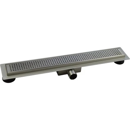 Die Duschrinne Elbe zeichnet sich durch ihre geringe Einbauhöhe und ihre elegante Optik aus. Im Duschrinnen-Set ist bereits ein hochwertiger Designrost aus Edelstahl enthalten. Die geringe Einbauhöhe und die verstellbaren Füße erlauben einen passgenauen Einbau in Ihr Badezimmer. Der passende Geruchsverschluss und das Dichtvlies sind ebenfalls im Lieferumfang enthalten.